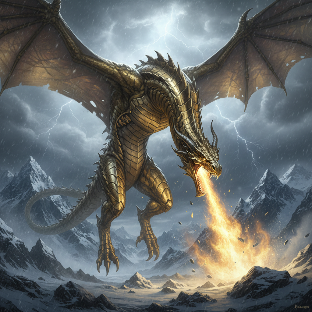 Și porniră mai departe. Zăpada nu le mai părea dușman — ci acoperământ. Dar cerul se umplu din nou de urlete. Cinci dragoni uriași coborâră peste ei, flăcările lor pictând albul în roșu.