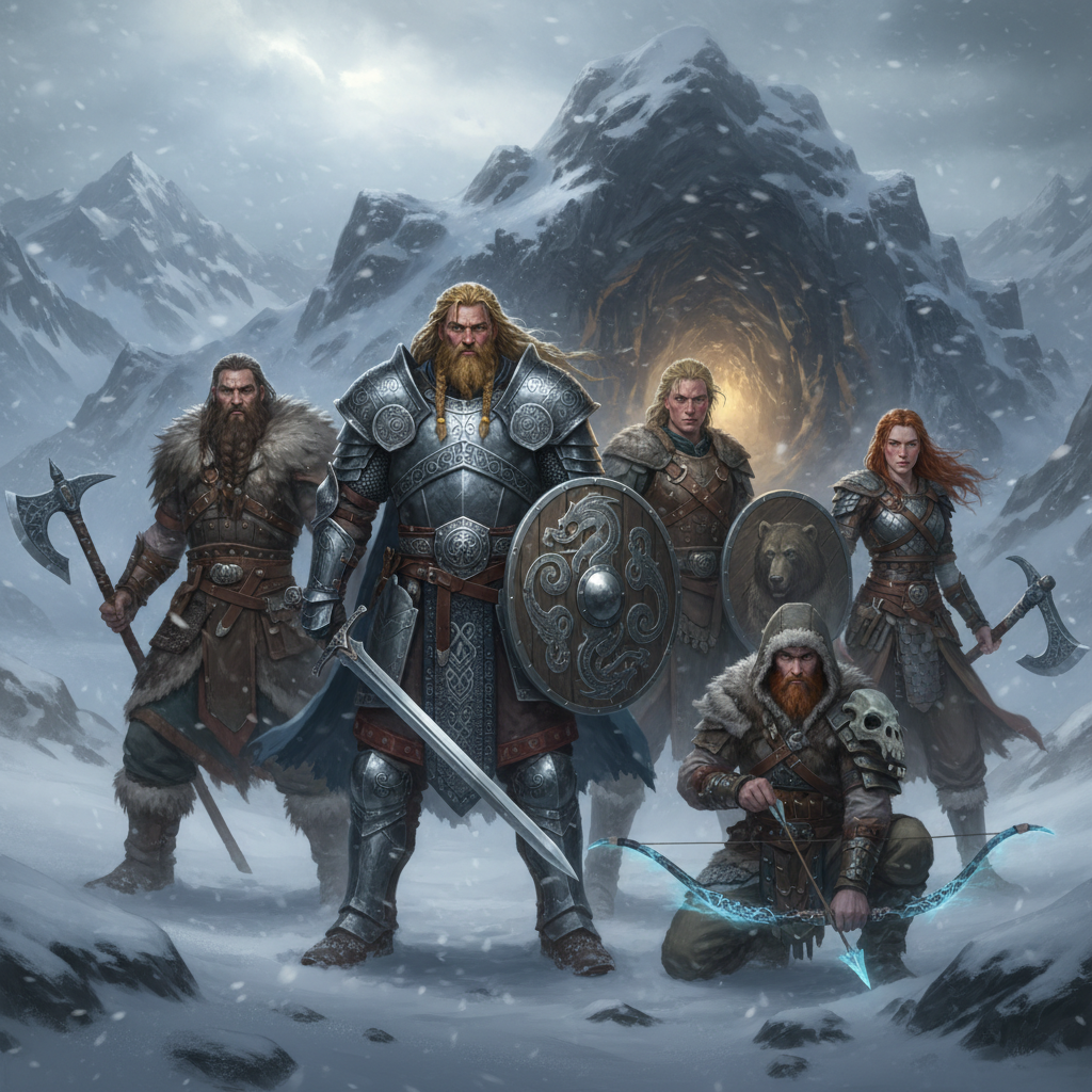 Munții Moksa fremătau sub o ninsoare care nu mai contenea. Cerul și pământul se îmbrățișau într-o perdea groasă de alb, iar aerul înghețat părea că respiră odată cu oamenii care urcau, gâfâind, spre culmi. Fulgi mari, moi, se așterneau peste pelerinele grele ale celor patru războinici. Zăpada le ajungea până la brâu.