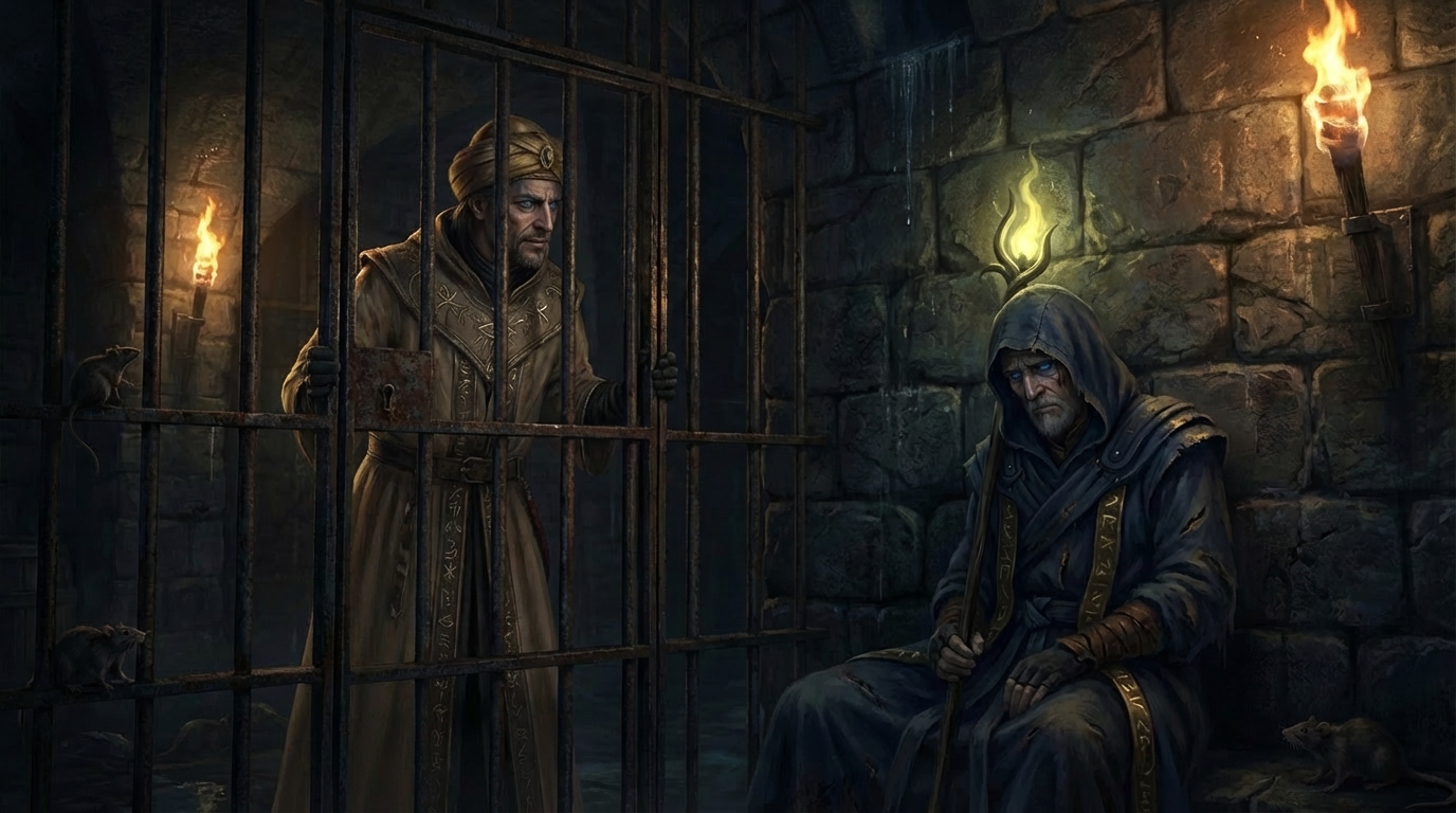 Trecuse o oră. Poate mai mult. În temnițele Madyadesei timpul curge altfel — picură încet, greu, ca apa pe piatră. Torțele pâlpâiau pe pereții umezi, aruncând umbre care păreau să aibă viață proprie. Undeva, departe, se auzea tunetul — furtună peste mlaștini, probabil. Sau poate doar ecoul propriilor mele gânduri.